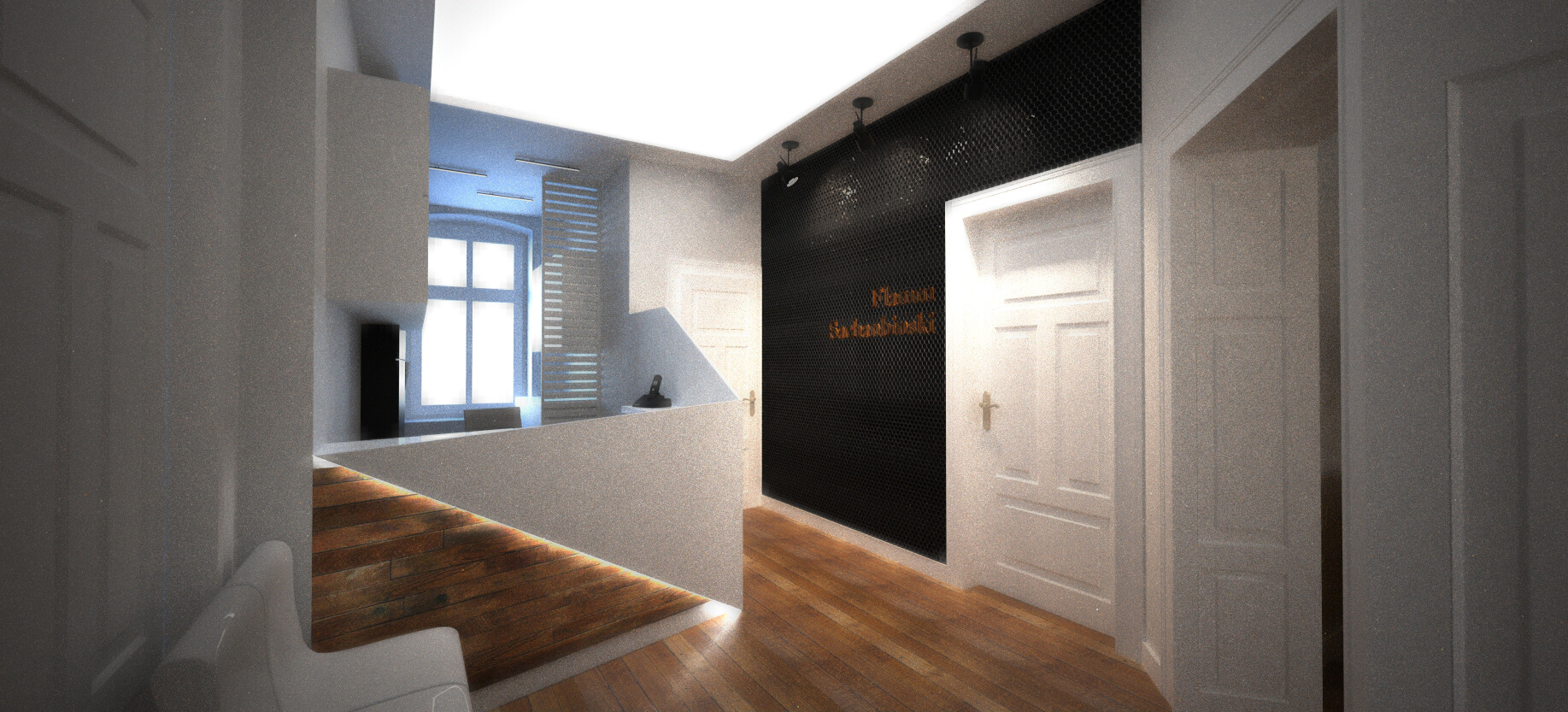 Projekt wnętrz kancelarii adwokackiej w kamienicy w Opolu.Projekt w trakcie realizacji Inwestorowi zależało na oderwaniu się od schematu typowej kancelarii. Zaprojektowaliśmy nowoczesne, eleganckie wnętrza z modnymi akcentami.